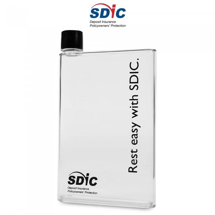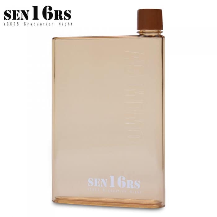 Water bottle in attractive colour. Slim design to fit into any bag easily.