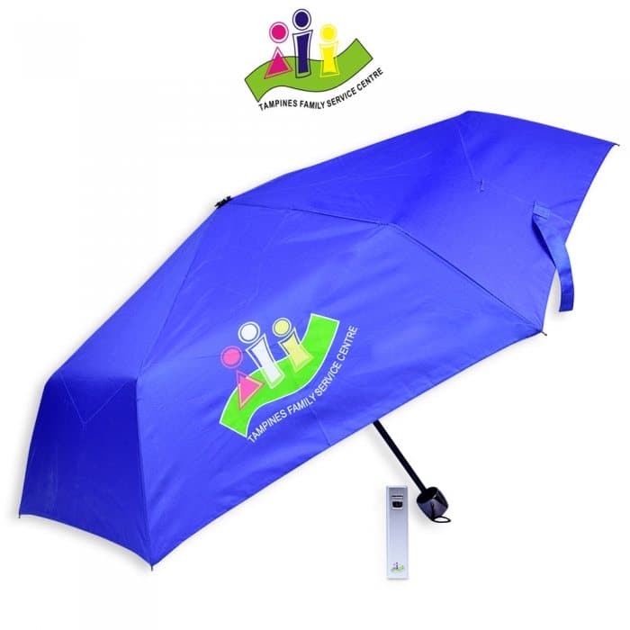 Mini Lightweight Collapsible Umbrella. Fully Customisable with company logo on umbrella.