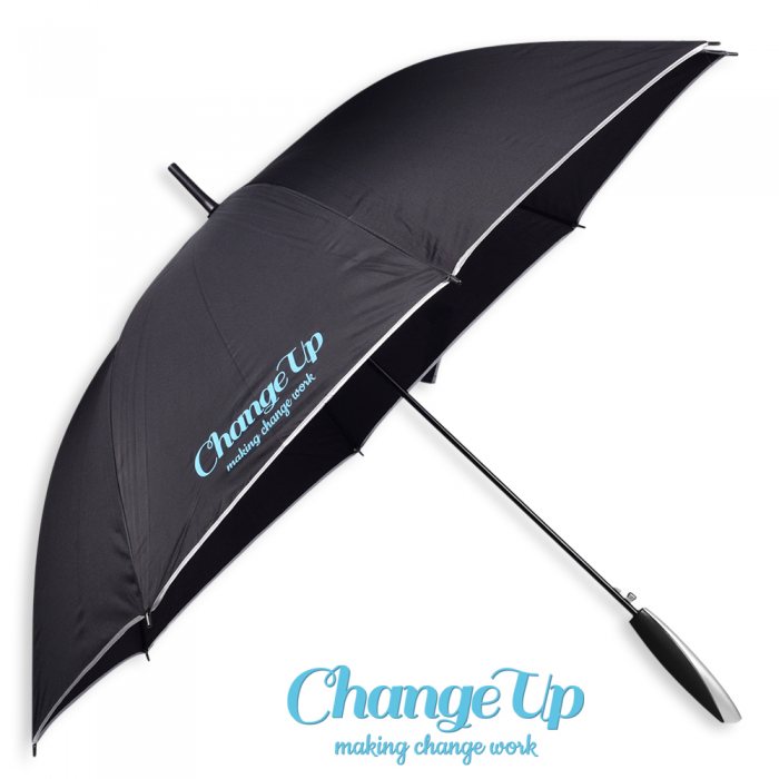 Pongee 190T, Plastic head & tips, Cover with strap, Auto open metal shalf & with silver trimming
