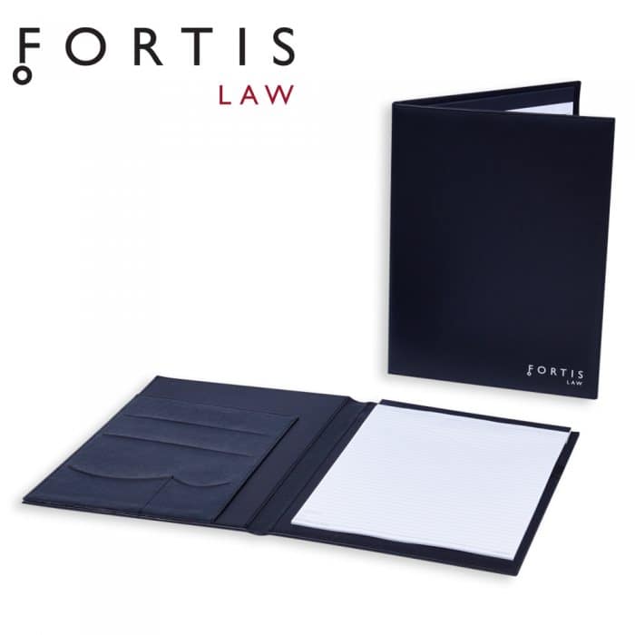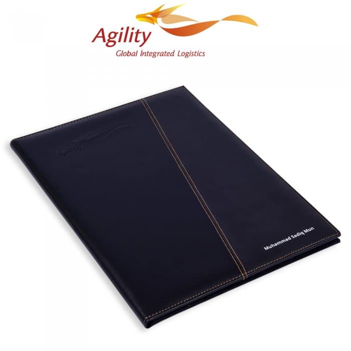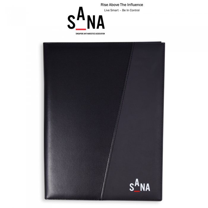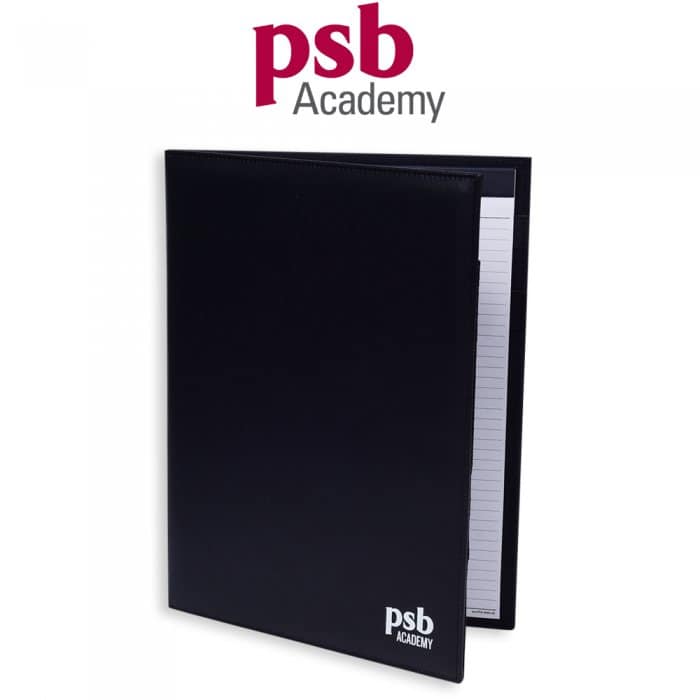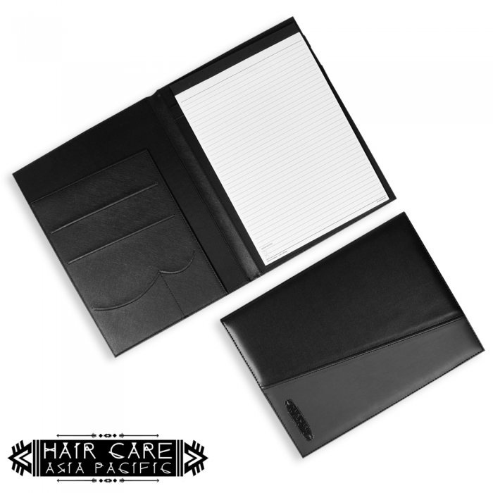 A4 size black simple design portfolio which comes with a notepad for easy note taking.