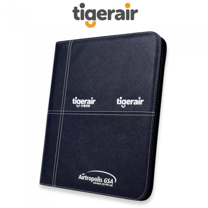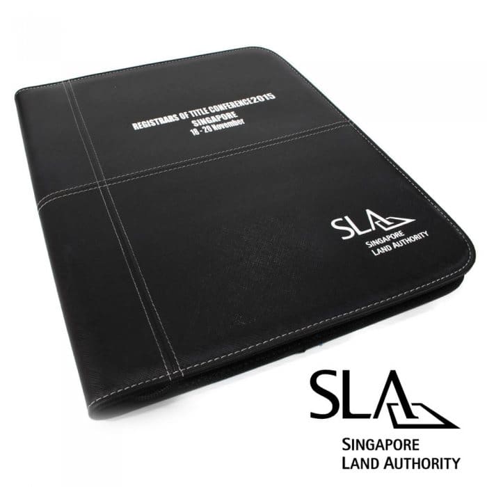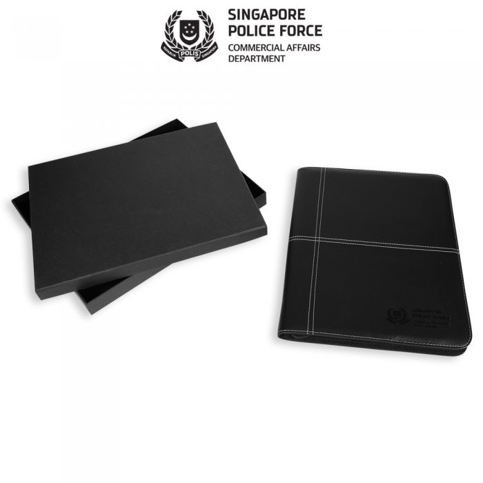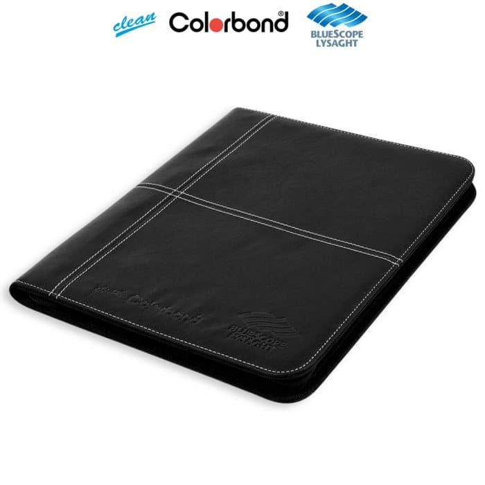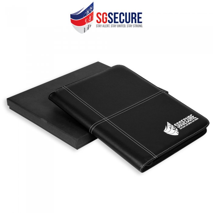 A4 folder with notepad, pen loop for compartment, namecard slots and zipped pocket