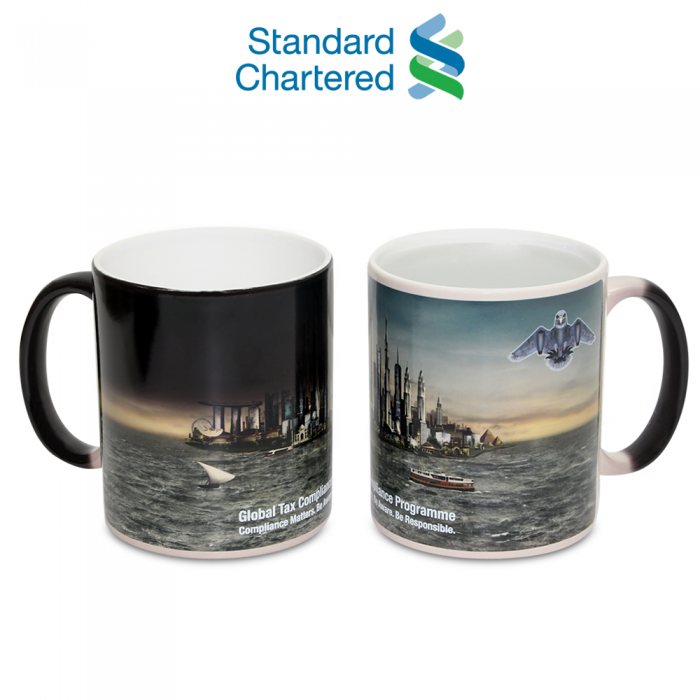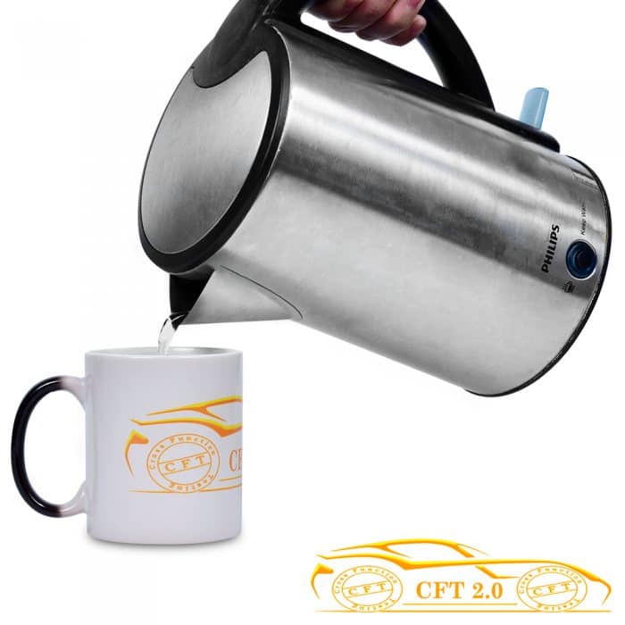 Personalised a mug with any logo or design. Design appears when you pour warm water into it. Comes with a premium box.