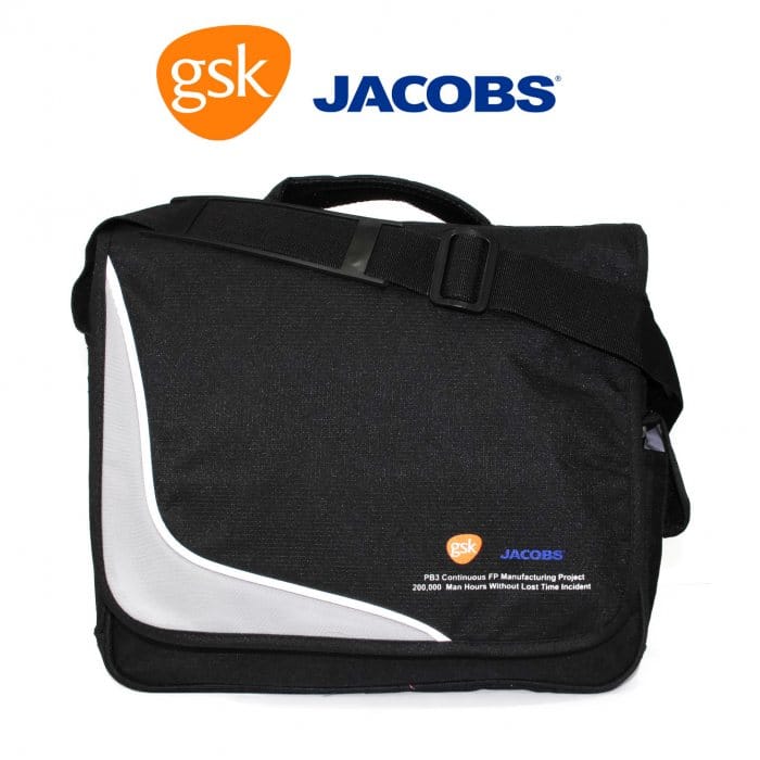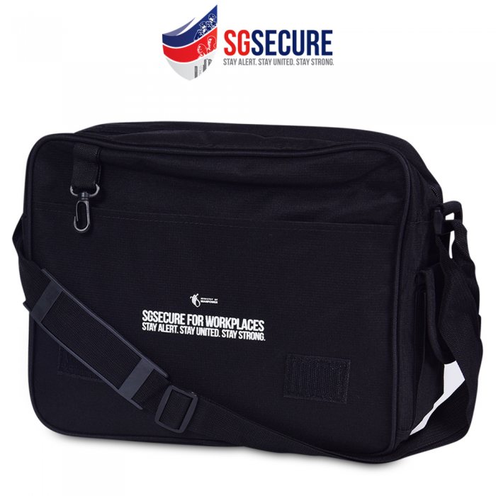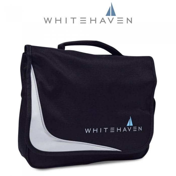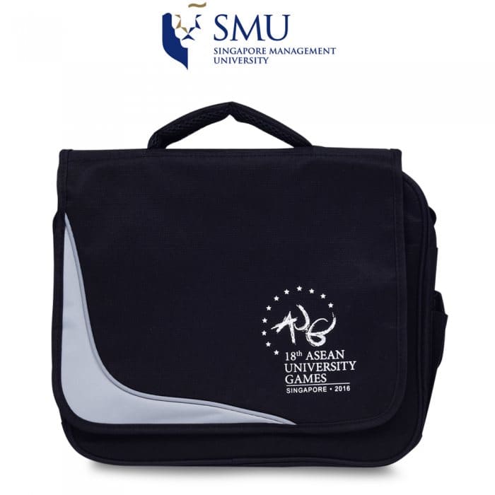 Document bag with adjustable shoulder strap, velcro closure front flap and several compartments to hold your documents.