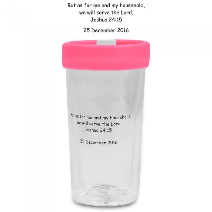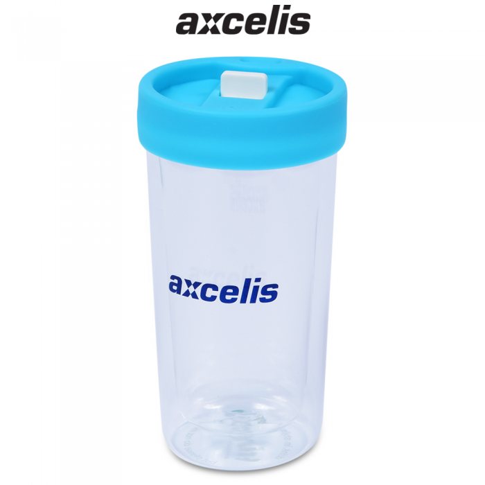 A tumbler that boasts a dual glass enclosure. Silicone lid cover with easy-slide drinking opening and closure.