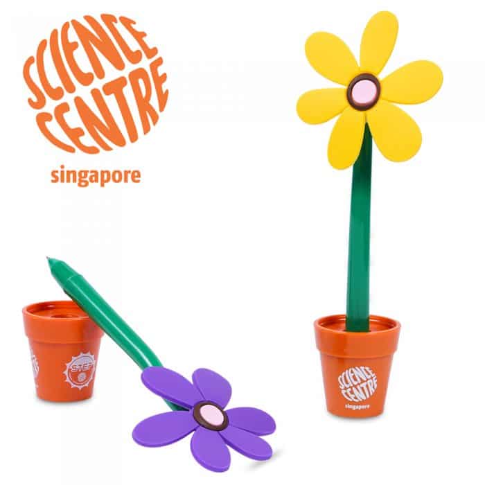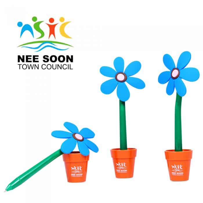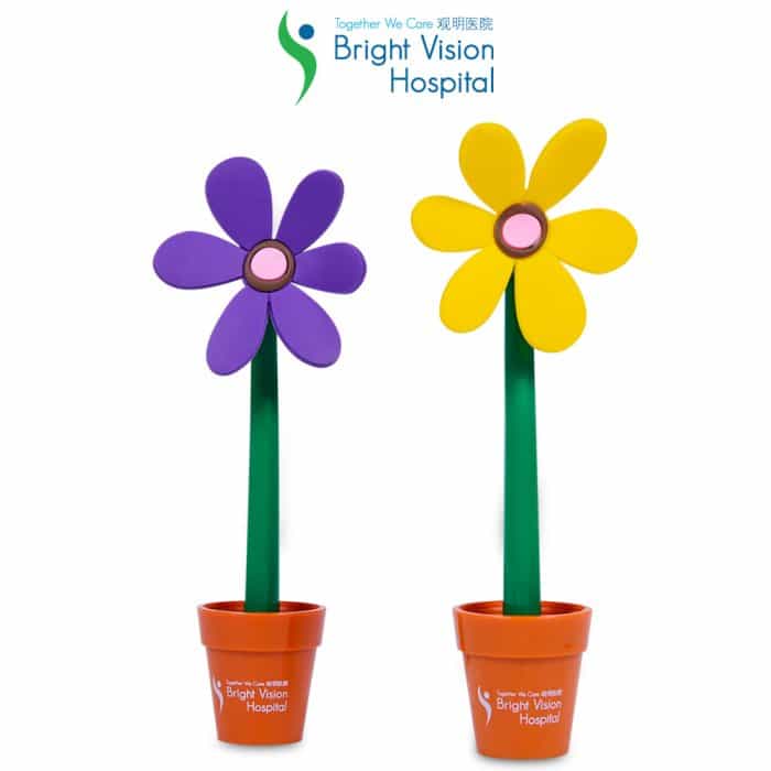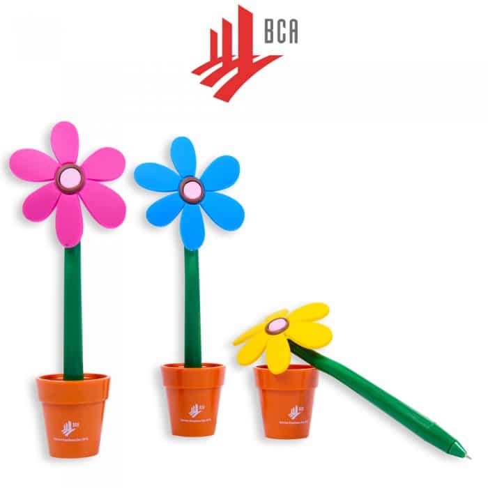 Flower pen with a pot holder. It can be an decorative item on your table to brighten your day. With a stand holder, pen will not be misplaced.