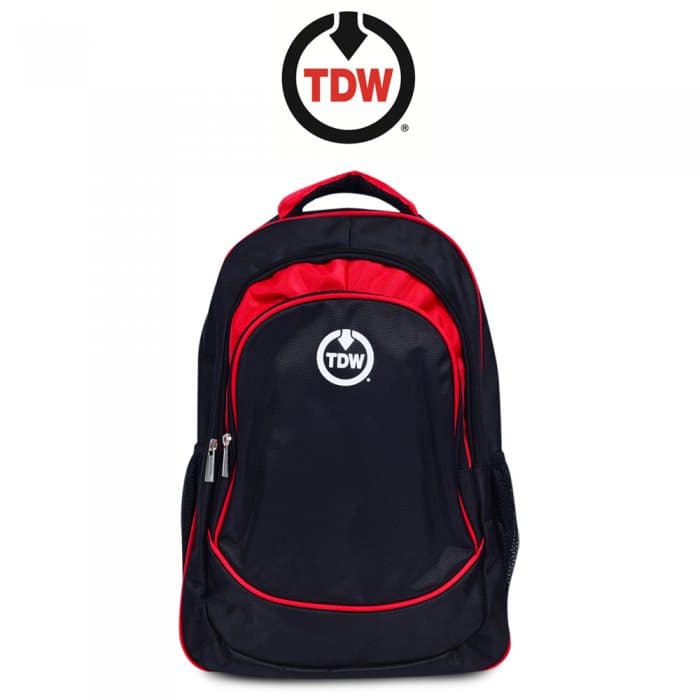 Zippered main and front compartment. Side mesh pockets. Grab handle. Padded adjustable shoulder strap.