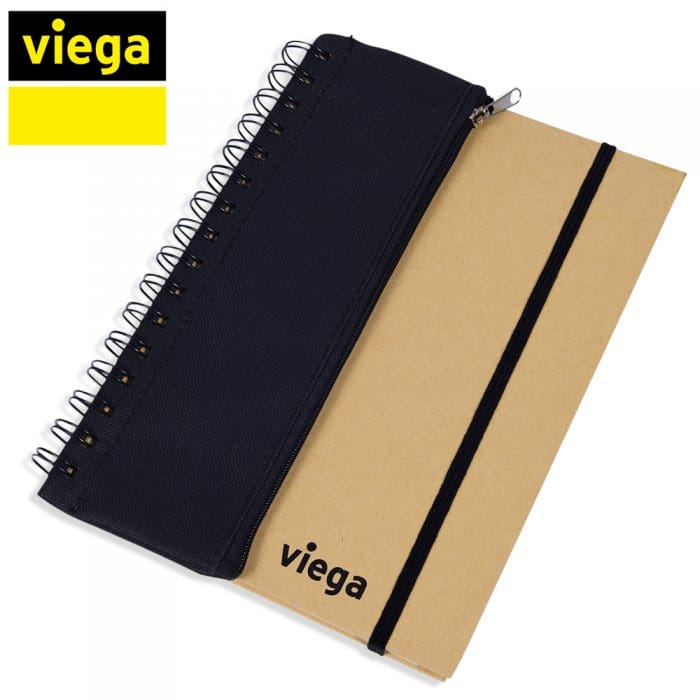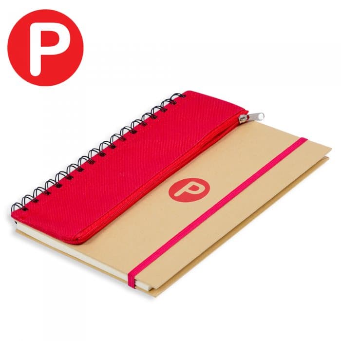 Designed to carry stationeries. A zip closure keeps the stationeries closed, so even if you carry it sideways or upside down, the stationeries inside will remain secure. It is attached with the notebook. Easy to carry.