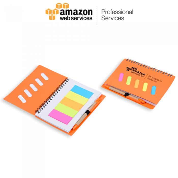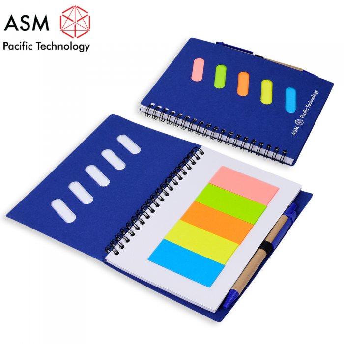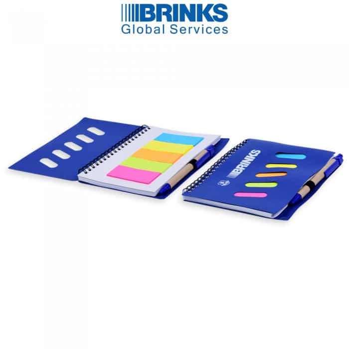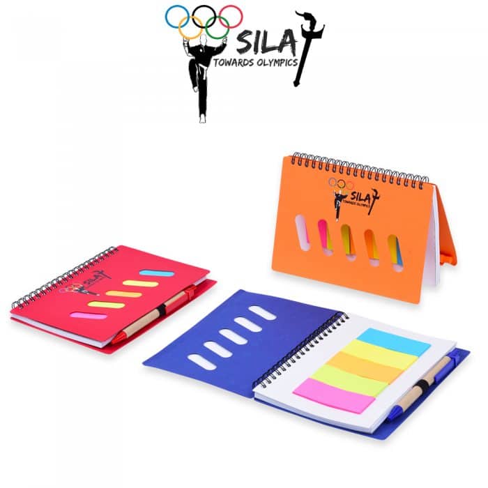 Colourful post it pad with notebook. With ball pen in black colour ink.