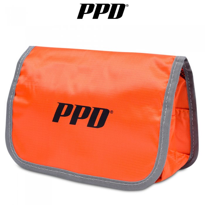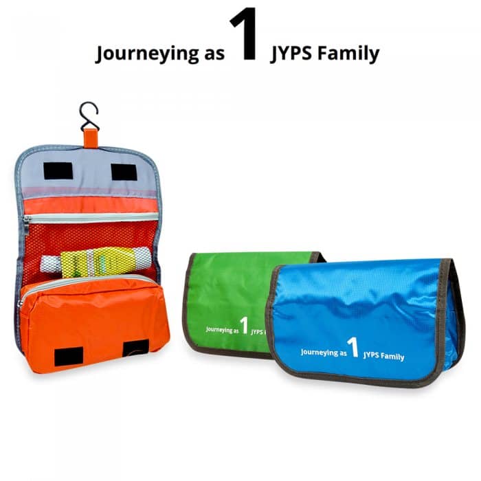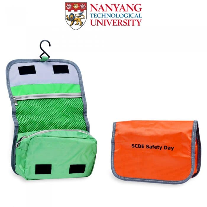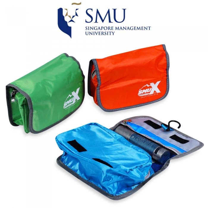 Basic toiletry bag with 2 main compartments to carry your toiletry accessories. Foldable feature is ideal for travelling. Includes a hook to hang the pouch.