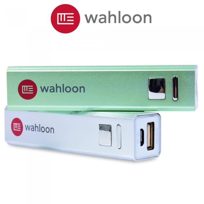 Colourful portable power banks in elegant plastic casing.