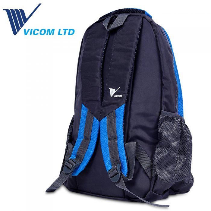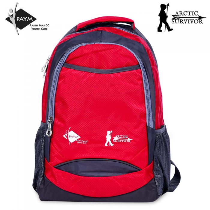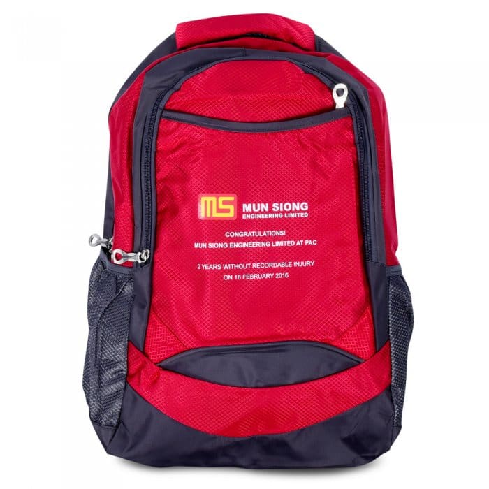Zippered main and front compartment. Side mesh pockets. Grab handle. Padded adjustable shoulder strap.